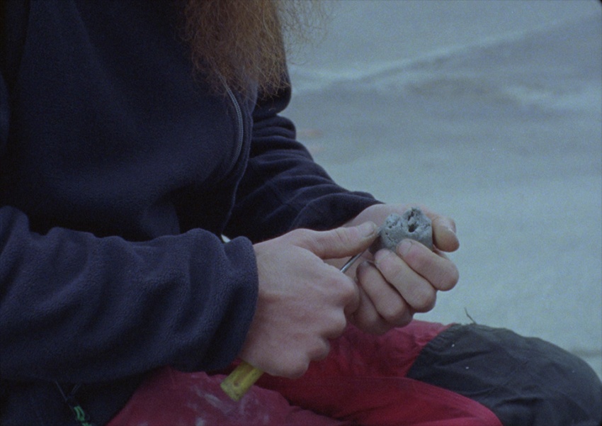 Tinted by the red safelight of the darkroom, the film (re)constructs a breathless pastoral horror about a place crystallised in time and terrorised by two 6cm tall stone heads whose current location remains unknown.